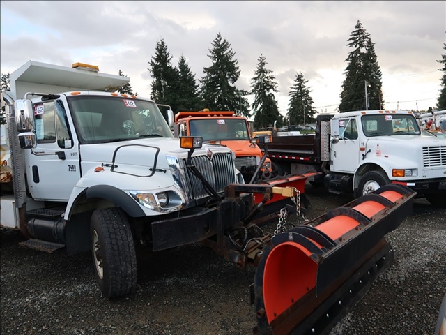 S/A DUMP TRUCK, 11' STEELBOX, TARP SYSTEM, DT530, AUTO,SPRING SUSPENSION, 172" WHEELBASE, FRINK 10' SNOW PLOW