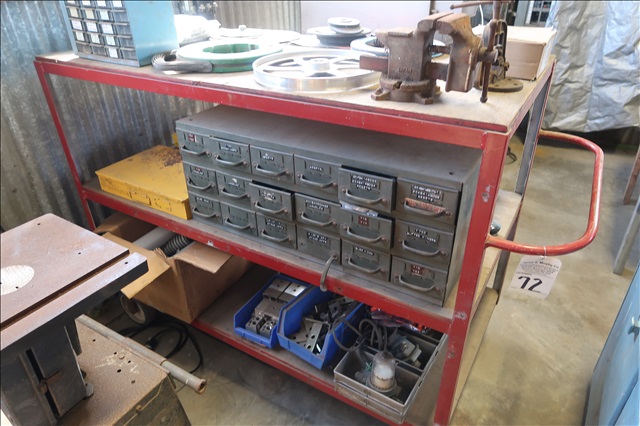 LOT, ROLLING STEEL TABLE W/CONTENTS