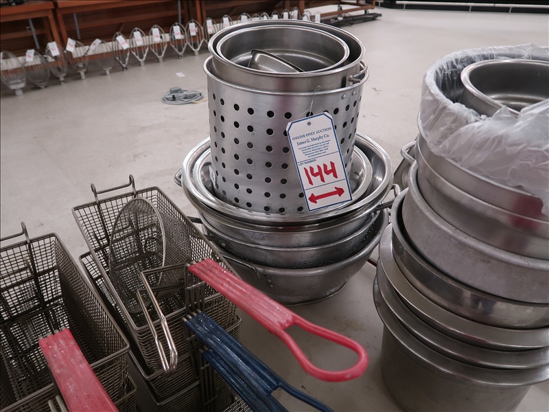 LOT, ASSORTED PANS & COLANDERS IN THIS STACK
