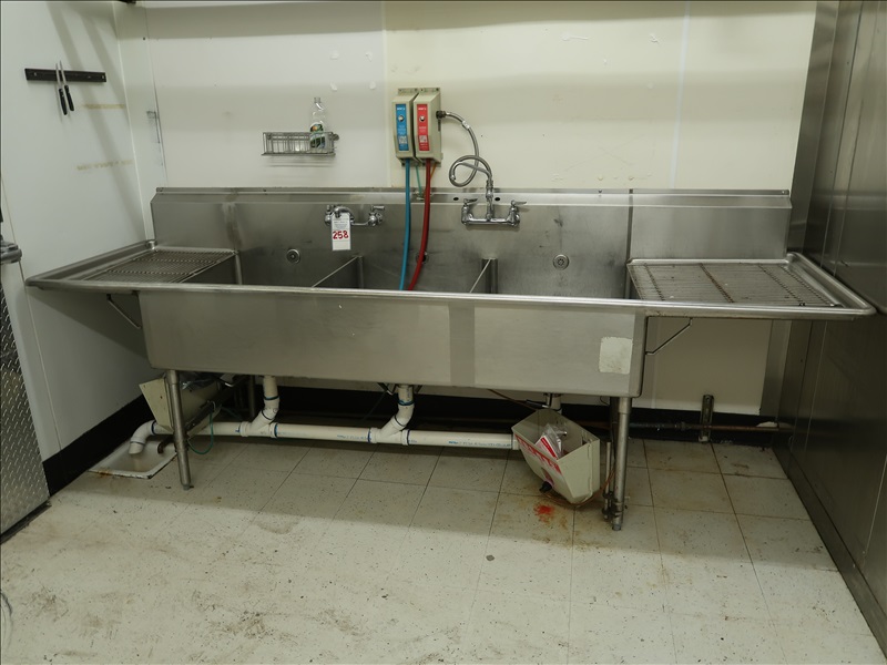 120" SS 3-COMPARTMENT DEEP SINK W/(2) FAUCETS
