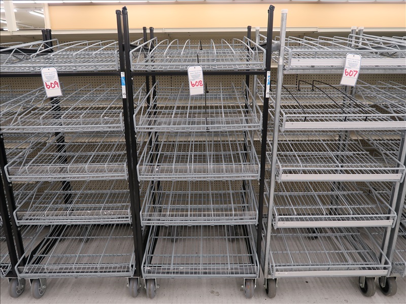 THE MILK MOOVERS GRAVITY FEED SHELVING RACK ON CASTERS