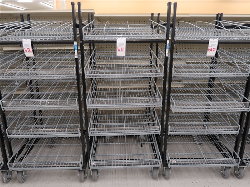 THE MILK MOOVERS GRAVITY FEED SHELVING RACK ON CASTERS
