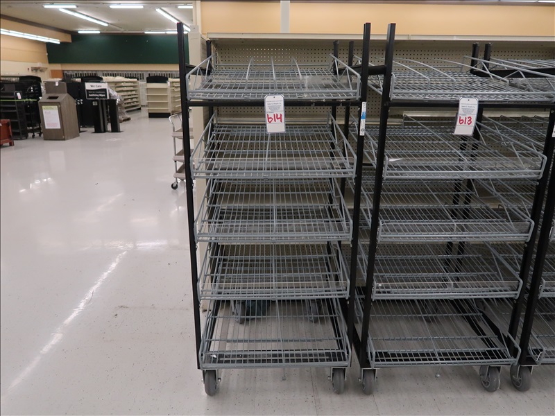 THE MILK MOOVERS GRAVITY FEED SHELVING RACK ON CASTERS