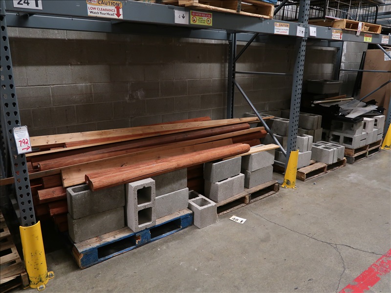 LOT, CEMENT BLOCKS & RAILS ON THESE (4) PALLETS
