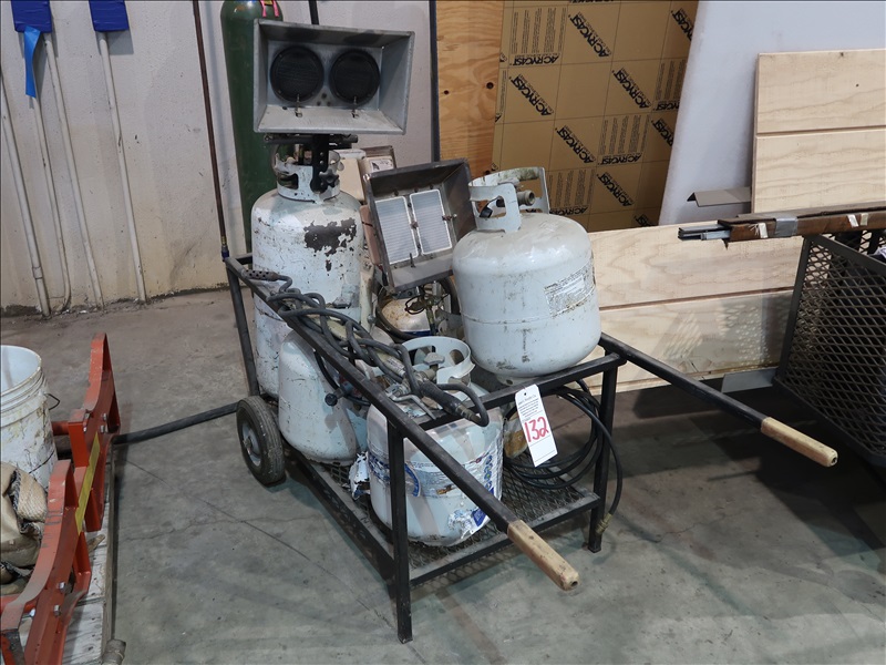 LOT, METAL CART W/(5) PROPANE BOTTLES, TORCH & HEATERS