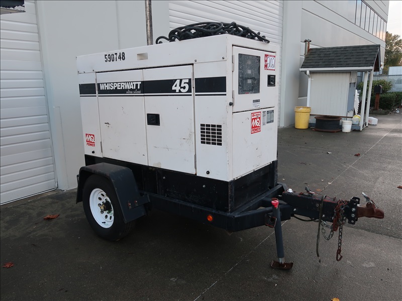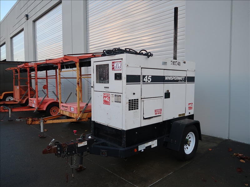 TRAILER MOUNTED 45 KVA A/C GENERATOR, ISUZU DIESEL DRIVE, HOUR METER READS: 9,581 (NO TITLE, SUBJECT TO BONDED TITLE, BUYER MUST GET WASH. STATE PATROL INSPECTION, WASHINGTON STATE BUYERS ONLY)