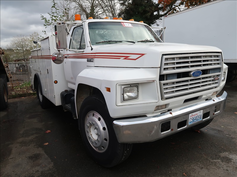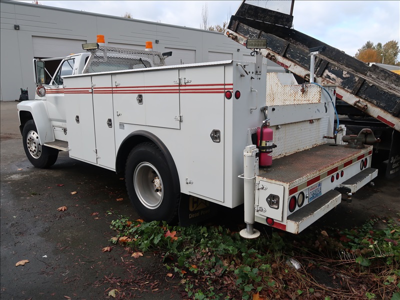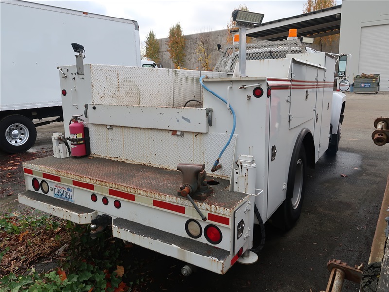 SERVICE BODY TRUCK, V8 DIESEL, 5/2 TRANS, HYDRAULIC DRIVE, AIR COMPRESSOR, HOUR METER READS: 640, REAR HYDRAULIC OUTRIGGERS, LED WORKLIGHTS, PTO, ODOMETER READS: 29,726