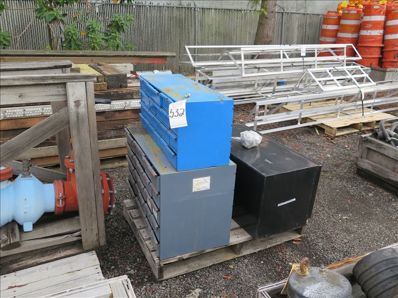 LOT, MISC METAL STORAGE BINS ON THIS PALLET