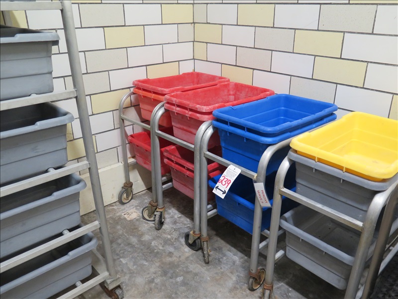 LOT, (4) ALUMINUM TOTE CARTS W/TOTES