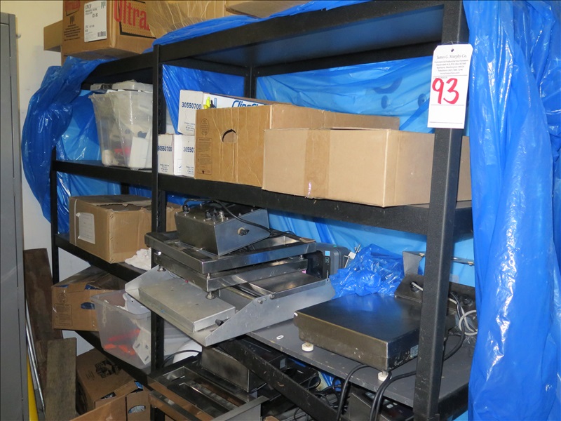 LOT, MISC SCALES & SUPPLIES ON THESE (2) SHELF UNITS (AT OSCAR LOCATION)