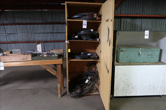 LOT, ASSORTED BELTS W/WOOD CABINET