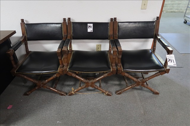 LOT, (3) WOOD CHAIRS W/LEATHER SEATS