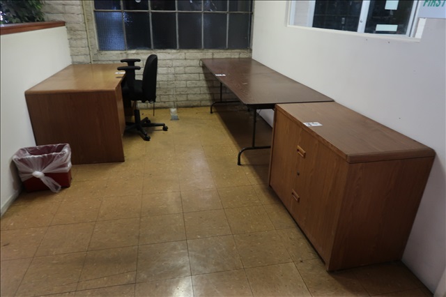 LOT, WOOD DESK W/WOOD 2-DRAWER LATERAL FILE CABINET