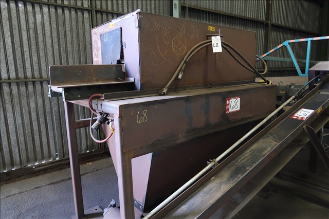 CUSTOM BUILT RIPSAW W/APPROX 5 HP/3,600 RPM MOTOR, (2) HYDRAULIC DRIVEN TOP FEED ROLLS, FEED THRU GRAVITY ROLLS