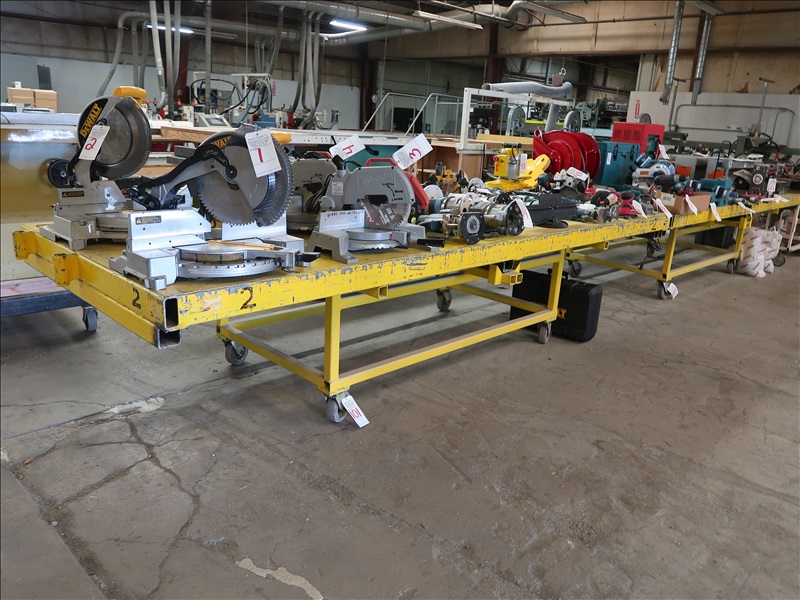 APPROX 34"H X 55"W X 145"L STEEL TABLE W/WHEELS (MUST WAIT UNTIL EMPTY TO REMOVE)