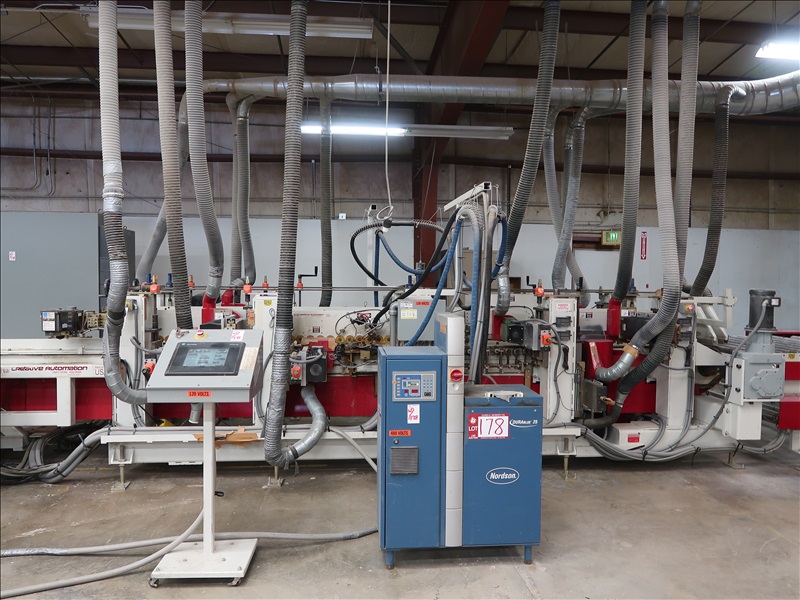 CORE BUILDER W/(6) 10 HP & (4) 7-1/2 HP HEADS, VERTICAL & HORIZONTAL DOVETAIL SLIDES, (3) HORIZONTAL HEADS ON BOTH SIDES OF INFEED, (1) HORIZONTAL & (1) VERTICAL OUTFEED HEAD ON BOTH SIDES W/PROSCALE SYSTEM, BACKSPLASH RELIEF GROOVE HEAD, RIGHT SIDE FIXED, 12"-49" CORE WIDTH CAPACITY, NORDSON DURABLUE 25 HOT MELT, (4) HOSES, (4) NOZZLES, ALLEN BRADLEY PANELVIEW 1000 CONTROLS, MARKED CONTROLS, ELECTRICS & PARTS (FLEX HOSE ONLY)