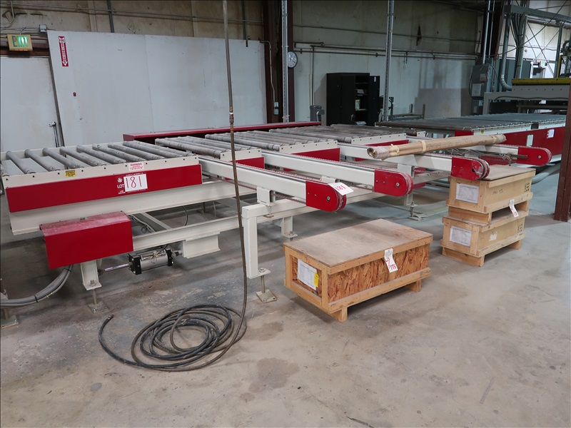 59"W X 15'L POWERED OUTFEED GRAVITY ROLLCASE W/12' 4-STRAND OUTFEED TRANSFER