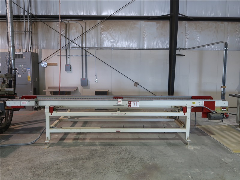 15-1/2' 2-STRAND ADJUSTABLE WIDTH INFEED TRANSFER W/(2) INDIVIDUAL DRIVE MOTORS & SPARE CHAINS