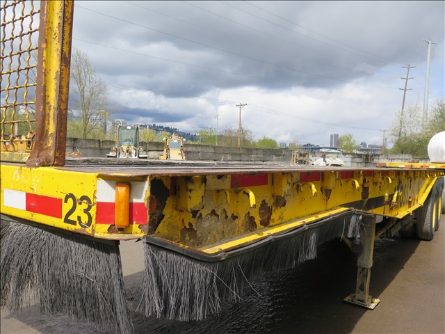 32' T/A FLATBED TRAILER, WOOD DECK, OUTSIDE RAILS