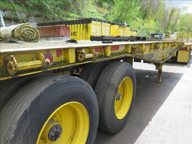 40' T/A FLATBED TRAILER, WOOD DECK, OUTSIDE RAILS