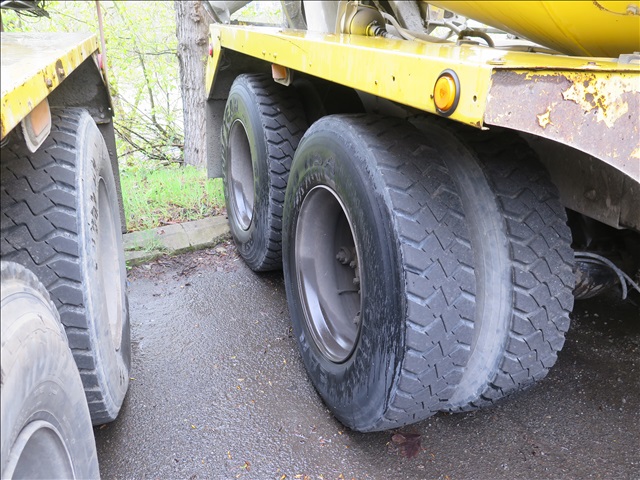 TRI AXLE, 9 CU YD MIXER TRUCK, 230 HP, 5+3, BEAM SUSPENSION, REX HYDRAULIC MIXER, S/A BOOSTER, WATER SYSTEM, ODOMETER READS: 516,086