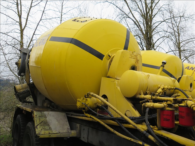 TRI AXLE, 9 CU YD MIXER TRUCK, 230 HP, 5+3, BEAM SUSPENSION, REX HYDRAULIC MIXER, S/A BOOSTER, WATER SYSTEM, ODOMETER READS: 557,544