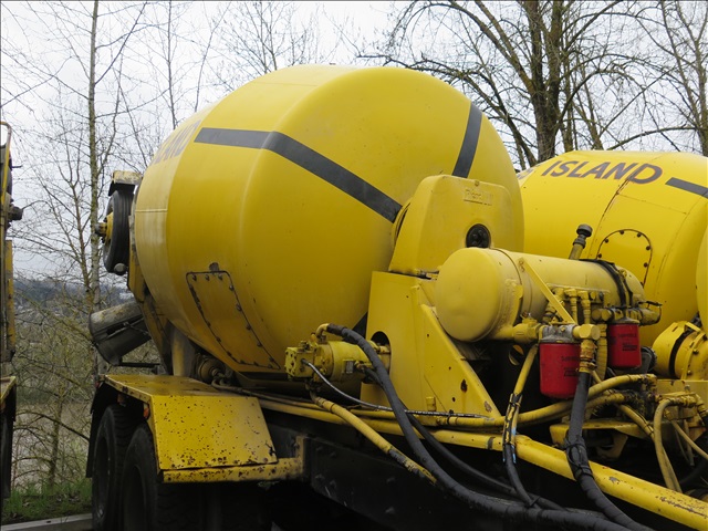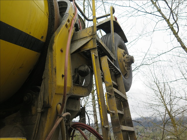 TRI AXLE, 9 CU YD MIXER TRUCK, 230 HP, 5+3, BEAM SUSPENSION, REX HYDRAULIC MIXER, S/A BOOSTER, WATER SYSTEM, ODOMETER READS: 598,701