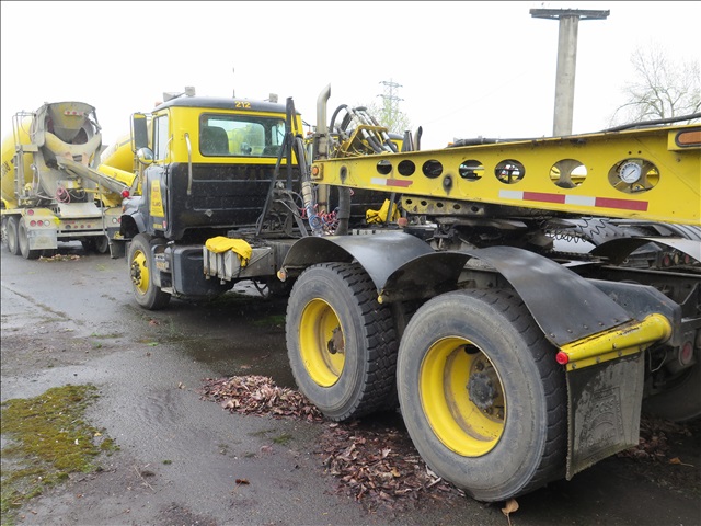 T/A TRACTOR TRUCK, E7-400, 9 SPD, CAMEL BACK SUSPENSION, WET KIT, SLIDING 5TH WHEEL, ODOMETER READS: 483,644 W/1992 MTM 12-1/2 CU YD MIXER TRAILER, HYDRAULIC SLIDE AXLES, HYDRAULIC MIXER, S/N: 29541