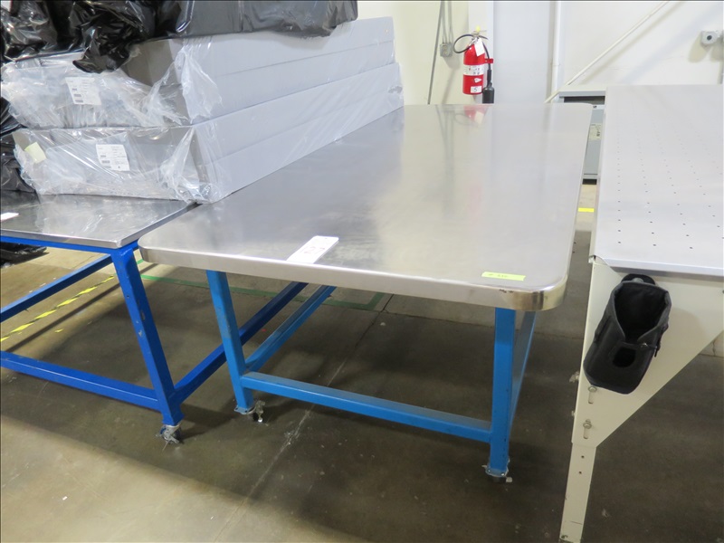 4' X 8' SS TOP METAL TABLE ON CASTERS