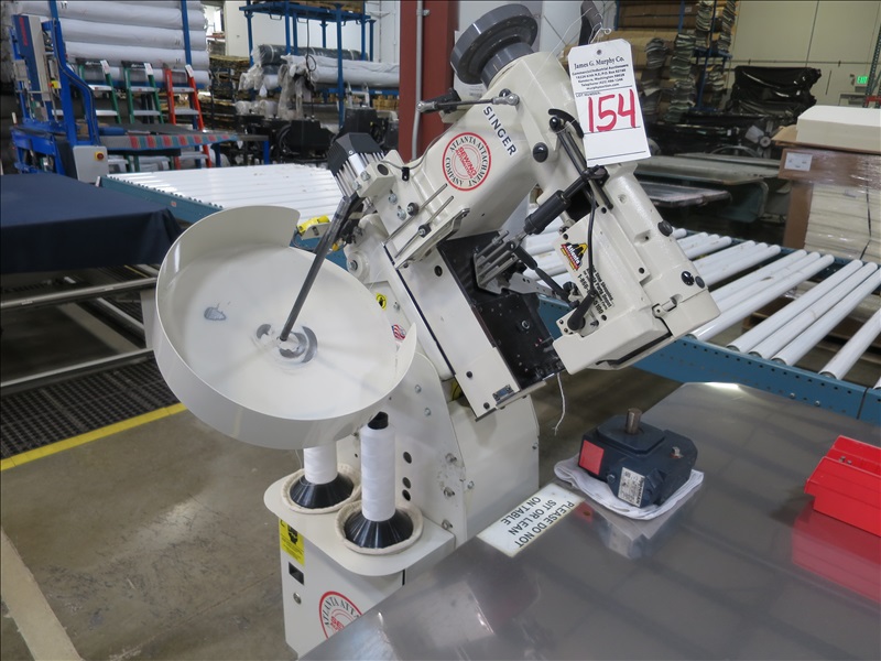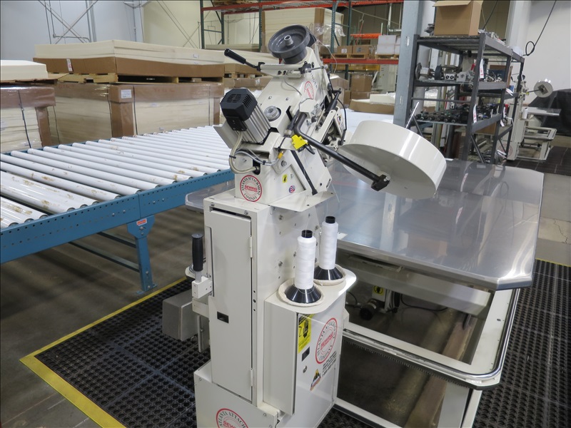 TAPE EDGE MACHINE W/SINGER 300UX6 SINGLE NEEDLE SEWING HEAD & 60" X 79" SS TOP POWER TABLE
