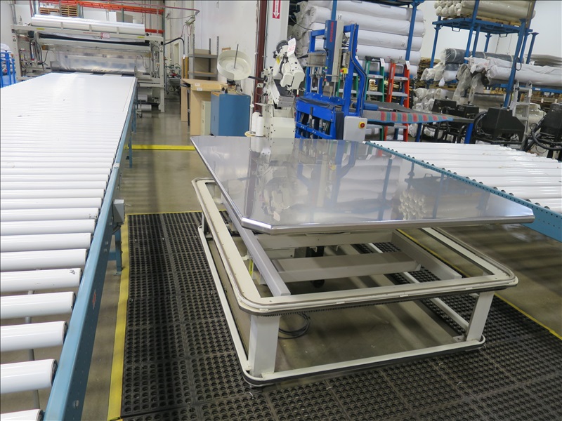 TAPE EDGE MACHINE W/SINGER 300UX6 SINGLE NEEDLE SEWING HEAD & 60" X 79" SS TOP POWER TABLE