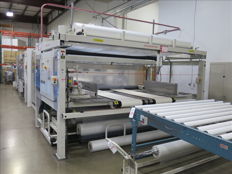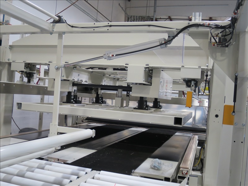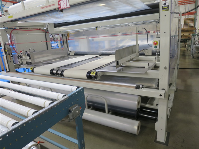 AUTOMATIC MATTRESS PACKAGING MACHINE W/FILM STORAGE DIGITAL FEED SYSTEM, TOUCHSCREEN CONTROLS, PNEUMATIC MATTRESS COMPRESSOR STATION, HEATED FILM SEALER BARS & CONTINENTAL HYDRAULICS UNIT, 480V, 3 PHASE