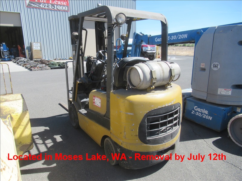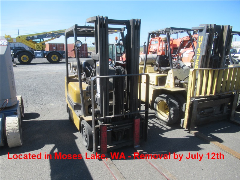 5,000 LB CAPACITY FORKLIFT, PROPANE, 188" 3-STAGE MAST, SIDE SHIFT, SOLID TIRES, HRS: APPROX 8,580
