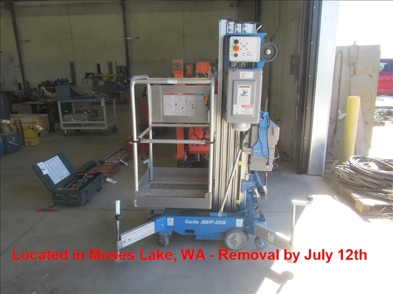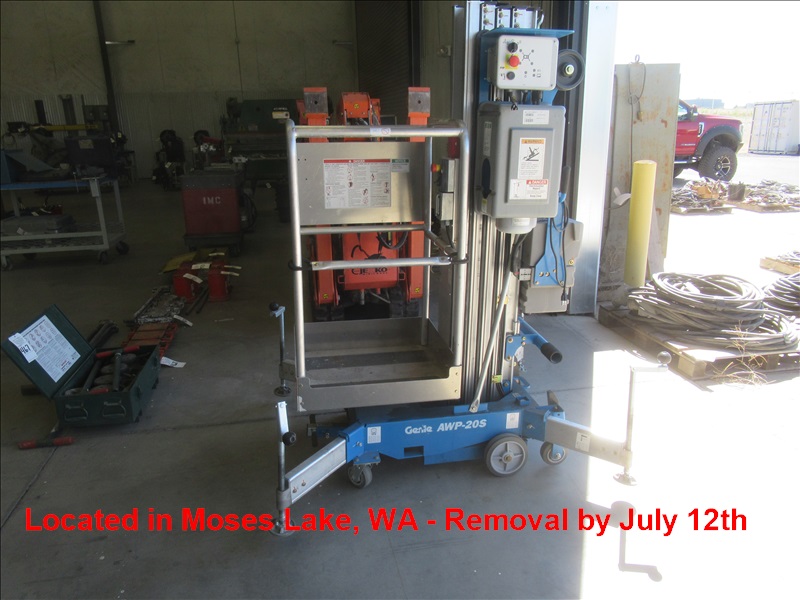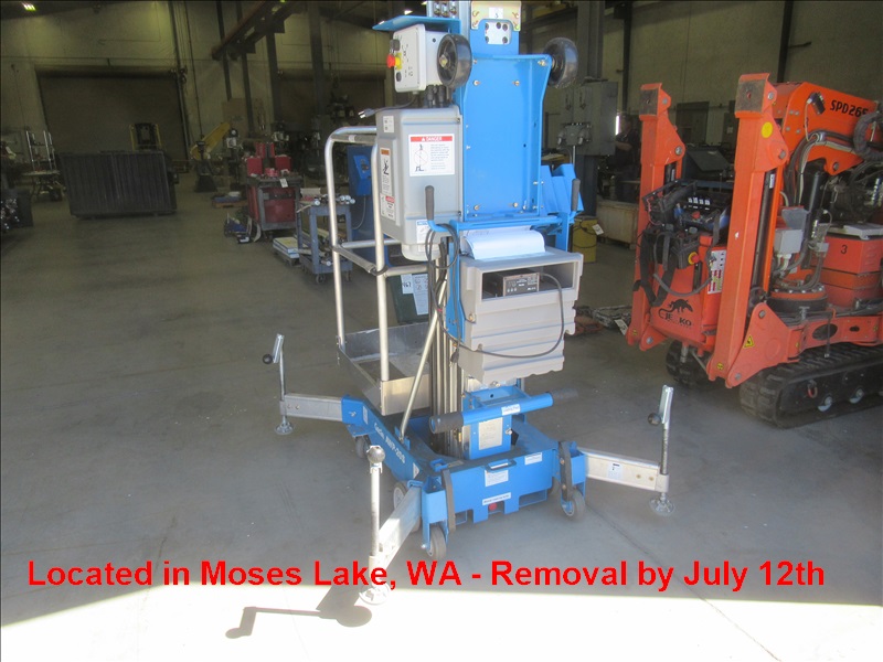 NARROW BASE AERIAL WORK PLATFORM, 20' MAX HEIGHT, 350 LB CAPACITY, DC POWERED