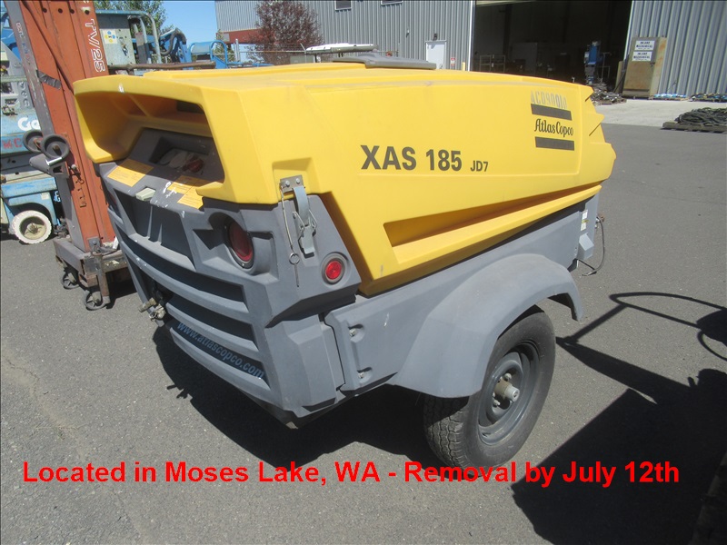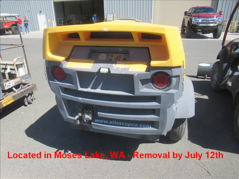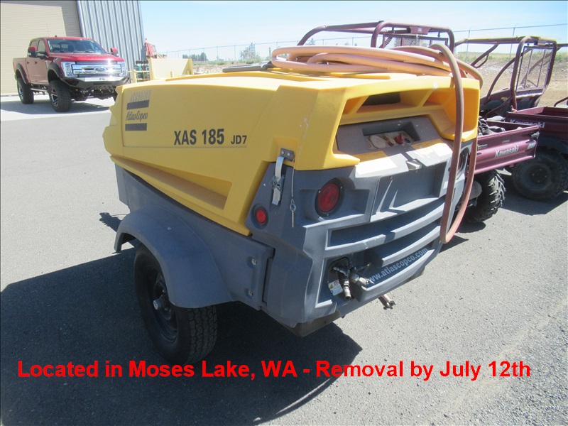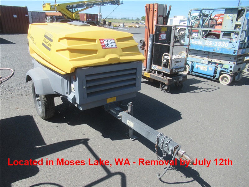 SINGLE AXLE TRAILER MOUNTED COMPRESSOR, 185 CFM, 100 PSI, JOHN DEERE 2014F281 4-CYLINDER, TIER 4 DIESEL ENGINE, HRS: 1,821