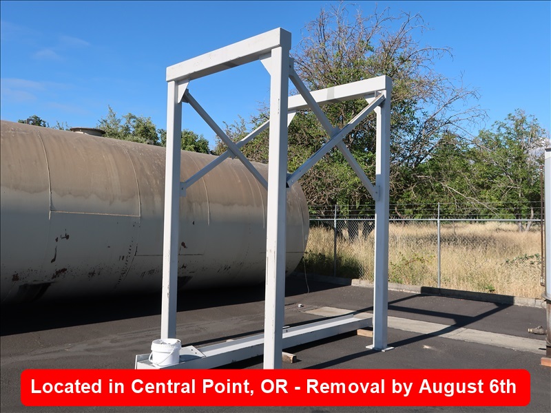 APPROX 7' X 7' X 12-1/2' BOLT TOGETHER STEEL FRAME W/14' I-BEAM (FOR TROLLEY, EQUIPMENT IS LOCATED OFF-SITE APPROX 3 MILES FROM AUCTION SITE, PLEASE CALL FOR PREVIEW, OWNER WILL LOAD THIS ITEM)