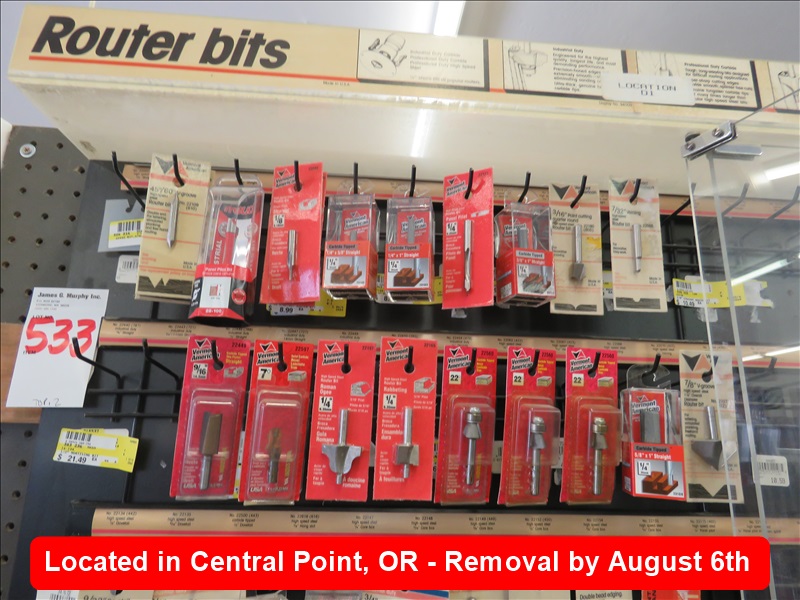 LOT, ASSORTED ROUTER BITS ON THESE (2) SHELVES