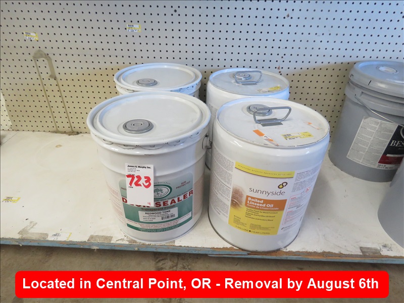 LOT, (4) 5 GAL CANS OF LINSEED OIL & DECK SEALER