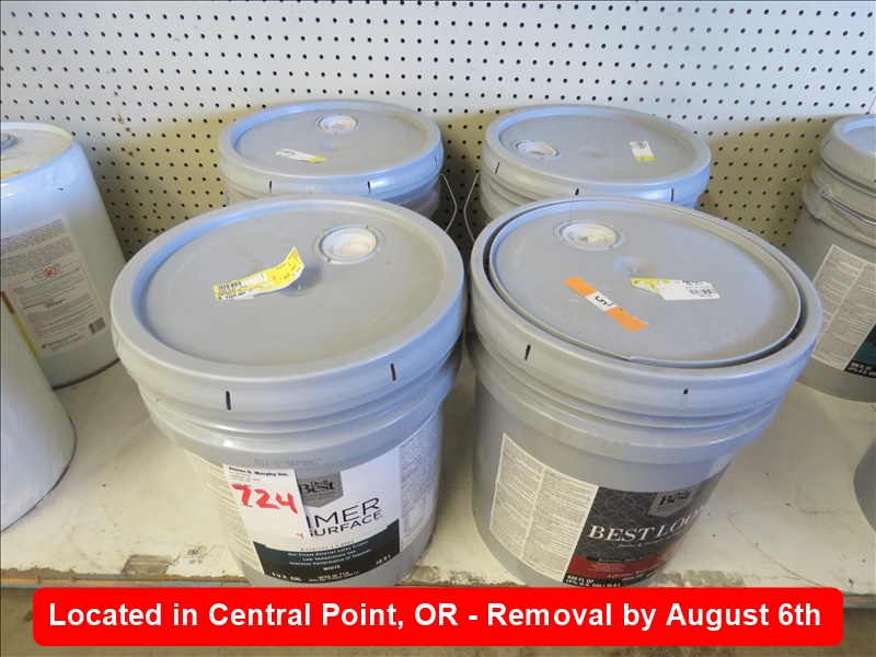 LOT, (4) 5 GAL BUCKETS OF ASSORTED PAINT