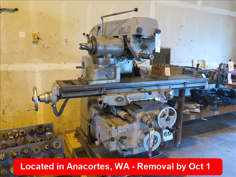 HORIZONTAL MILLING MACHINE, VERTICAL HEAD, 62" T-SLOT TABLE