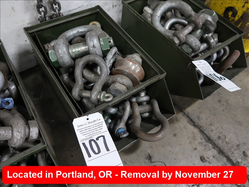 LOT, ASSORTED SHACKLES IN THIS STEEL BIN