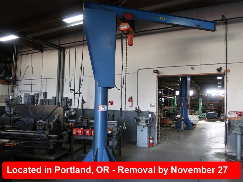 1 TON CAPACITY SHOP BUILT SWING ARM JIB W/CM 1 TON ELECTRIC HOIST W/PENDANT CONTROLS