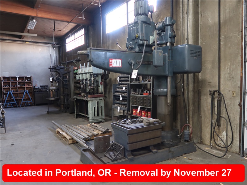 5' RADIAL ARM DRILL W/14" COLUMN, 32-800 RPM SPINDLE SPEEDS, 24" X 34" T-SLOTTED KNEE, T-SLOT BASE