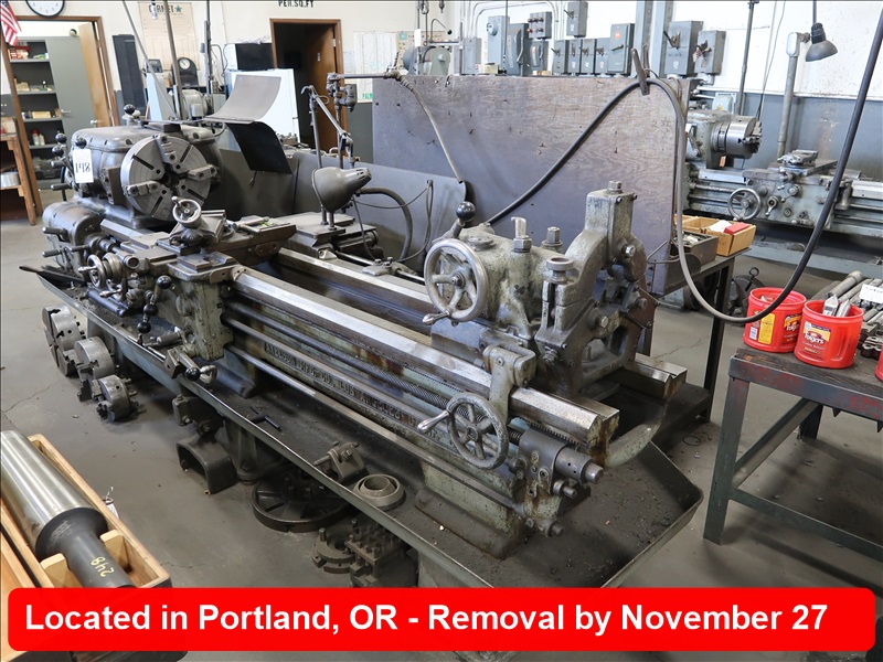 19" X 78" ENGINE LATHE, 1-3/4" THRU HOLE, (2) 4-JAW & (2) 3-JAW CHUCKS, TOOL POST, TAIL STOCK & STEADY REST, FACE PLATE, MARKED LATHE TOOLS & BENCH