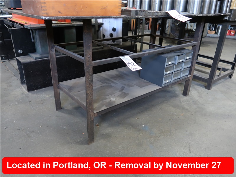 APPROX 34" X 72" STEEL TABLE (MUST WAIT UNTIL EMPTY TO REMOVE)