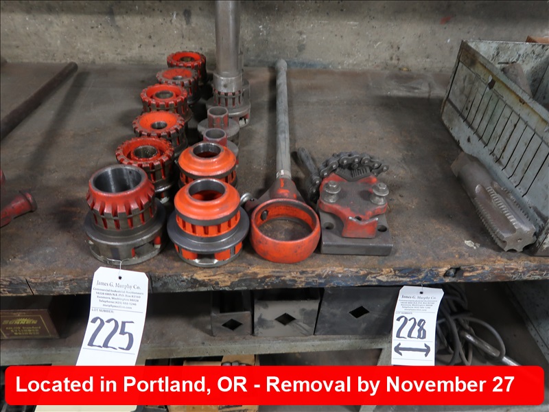 LOT, ASSORTED DIES, TAP HANDLE & PIPE VISE