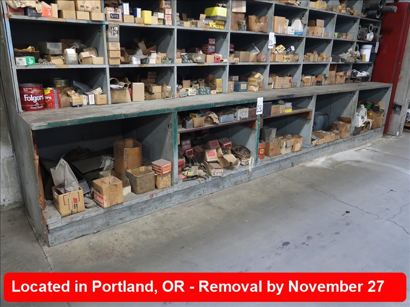 LOT, (5) HORIZONTAL SECTIONS OF ASSORTED ITEMS W/WOOD RACK (MUST UNTIL EMPTY TO REMOVE)