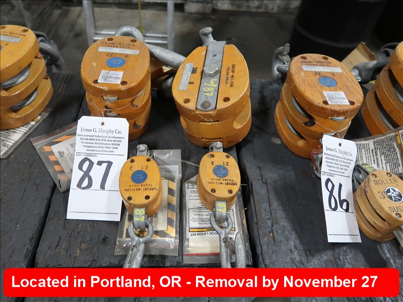LOT, (4) WOOD BLOCK PULLEYS