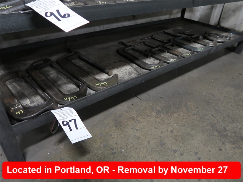 LOT, ASSORTED CLAMPS ON THIS SHELF
