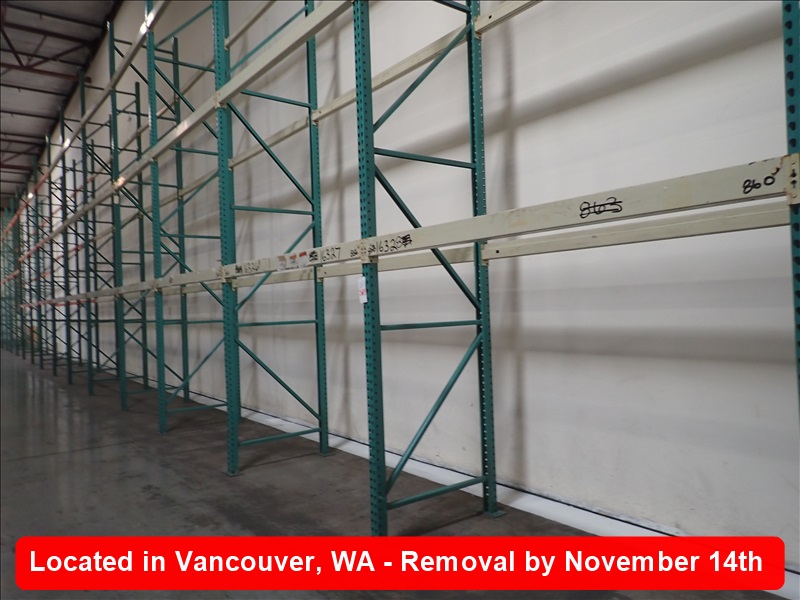 LOT, 9-SECTIONS OF 22' X 42" D X 8' W SHELVING & 9-SECTIONS OF 22' X 42" D X 90" W SHELVING (ROW 9, $500 REFUNDABLE DEPOSIT REQUIRED FOR PROPER STUD GRINDING)